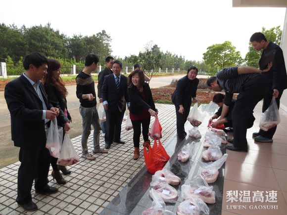 4月3日下午,梨温高速广丰收费站宰杀了今年开春以来第一头猪。该站员工齐聚一堂,乐在其中,上演了一场别开生面的“分猪肉”喜人场面。