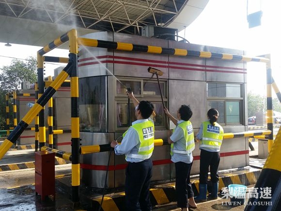 为迎接全国干线公路检查,美化站区环境,提升服务质量,给司乘人员提供一个优美的出行环境。10月16日上午,弋阳站组织全站员工对收费广场和收费车道进行一次彻底的冲洗、打扫。