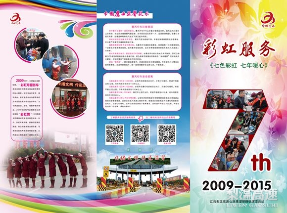 梨温高速鹰潭西收费站彩虹服务2009年运行至今,已经第七个年头,彩虹号服务车由当初的简单送水送面发展到现在的多样化:为司乘送姜汤、报纸、地图等便民物品,并在2015年拥有自己的新搭档“彩虹舞”,为司乘朋友舒缓情绪带来全新服务体验。2016年1月19日,受大雾天气影响,鹰西站入口交通受管制,大批车辆滞留在收费站口,正在司乘朋友焦急等待的过程中,该站彩虹服务以全新的面孔,走进车流,驱散迷雾,温暖人心。