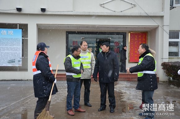 近日,按照抗击冰雪领导小组分工,梨温公司总经理潘皓、党委书记周洪达、副总经理俞毓玲、邓琼华、雷霆,总经理助理付群等主要领导,相继冒雪赴赣浙收费处、玉山管理处、上饶收费处等五个管理处14个收费站,督查指导春运和抗冰雪保畅通工作。