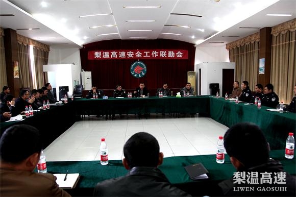 近日,梨温公司强化安全形势教育,认真落实安全排查隐患,以责任到人、监管到位、整改到底的工作态势,迅速部署推进年终岁尾全线的安全保畅工作。11月30日,该公司在鹰潭处召开安保联勤会议,联合高速交警五支队及大队、各小修施工单位提出问题,征求意见建议,进一步推进安全生产联勤工作。总经理潘皓、省高速交警五支队支队长李振林,副总经理邓琼华等参加会议,总经理助理付群主持会议。