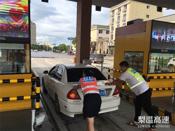 9月11日下午3时许,一辆外地牌照浙HLF3++汽车由南昌南管理中心上饶西收费站排队领卡,细心地收费员发现该车的后面有一路似水的轨迹,疑似油箱漏油。