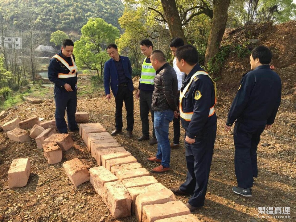 上午9点,该所养护人员在沪昆高速K513+590处发现护栏外堆放着砖头和泥沙,几个村民正在建控区内私自打地基准备修建房屋。经现场测量,该房屋施工地距离高速公路隔离栅仅2米,养护人员和路政工作人员耐心向当事人讲解《高速公路管理条例》,告知在高速公路建筑30米内新建、扩建建筑物或者地面构筑物都属违法行为。