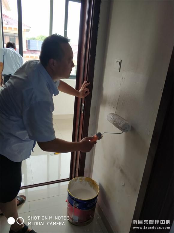 因长时间的风吹日晒、受潮,办公楼和宿舍楼房间墙面外皮多处出现了破损、脱落、发霉等现象,严重影响该站的容貌形象,员工们主动充当起“粉刷匠”,各自明确分工,按照“精、准、细”要求落实整个过程,用滚动油漆刷将站里所有缺陷的墙面重新刷了一遍,整个墙面顿时变得更加光泽亮丽,整洁美观。