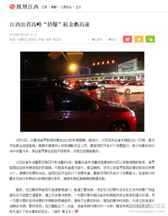 【媒体聚焦】凤凰网:江西出省高峰“挤爆”杭金衢高速