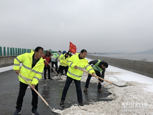 盯紧重点路段,集中力量抢通。中心所辖都九、九绕高速公路地处赣北,持续低温天气下,道路积雪积冰较为严重,不及时处置很容易出现交通事故。该路段管理所在最短时间内调集包括平地机、装载机和铲雪车在内的16台大型设备用于铲冰除雪,投入融雪剂、工业盐190吨,反光锥1500个,防滑链10套,标志标牌100块,组织80余人24小时不间断对全线道路尤其是重点结冰路段、桥面、互通、匝道等区域抛洒融雪剂、工业盐,路面冰雪得到有效清理。