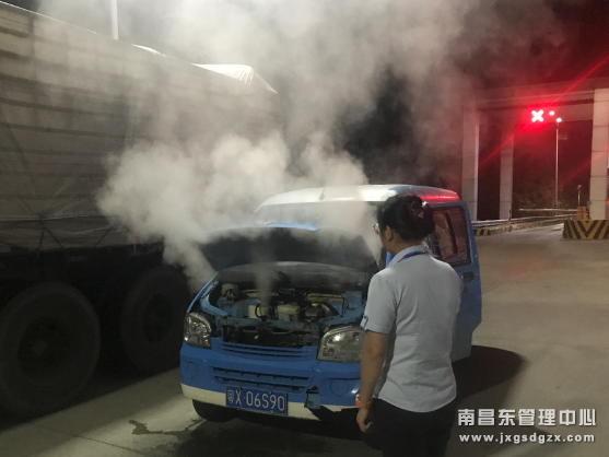 姑塘收费站深夜伸援手消除冒烟车辆险情