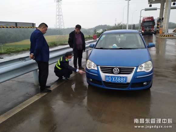 10月19日,南昌南管理中心杜市收费站员工热心帮助一辆抛锚车辆,确保了司乘的安全出行。