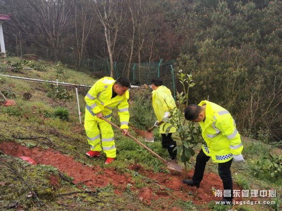 一年最是春光好,植树播绿美家园。3月20日,南昌南管理中心玉山收费所广丰收费站组织员工种植果树苗,为庭院再添一片生机。