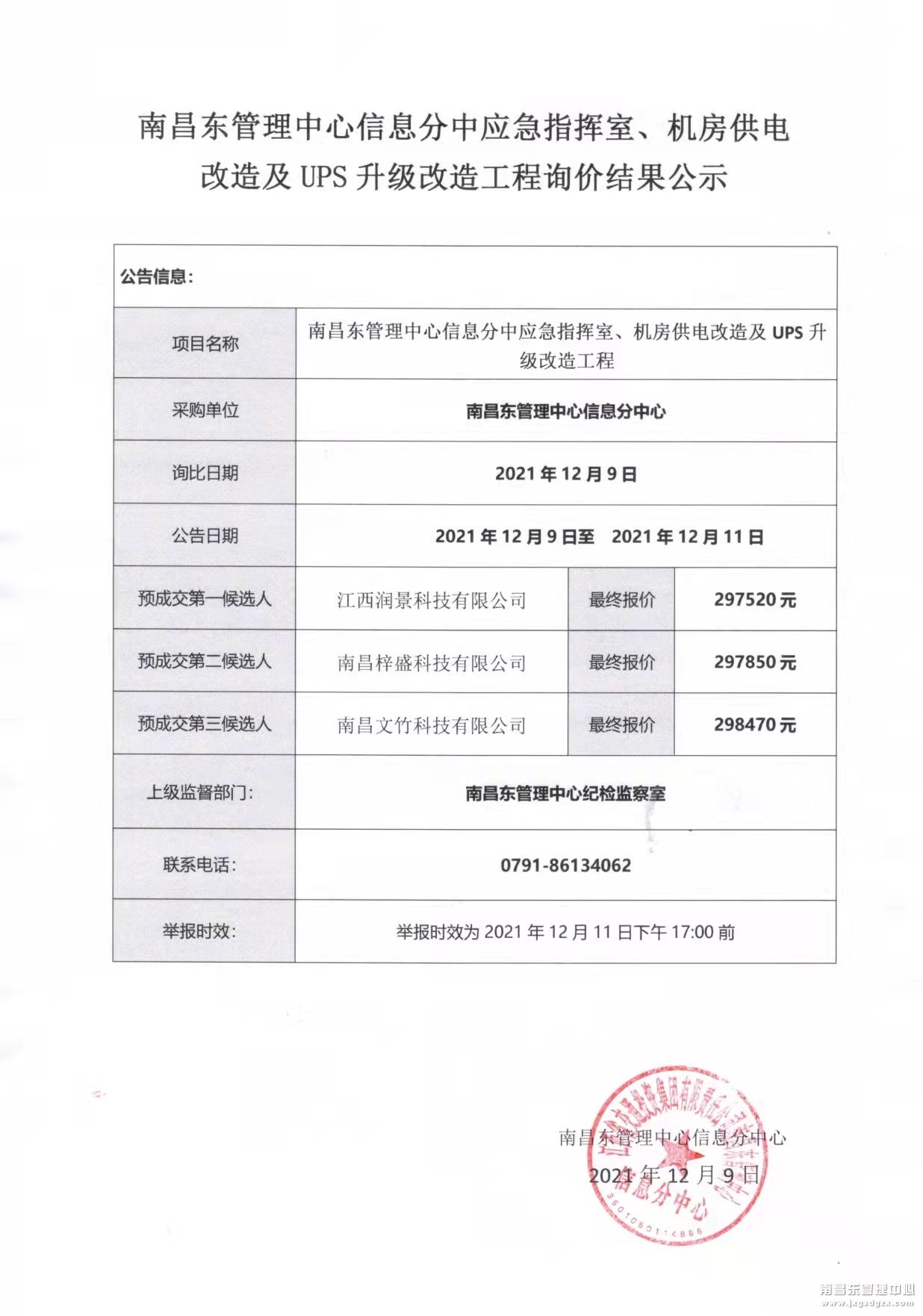 南昌南管理中心信息分中心应急指挥室、机房供电改造及UPS升级改造工程询价公示