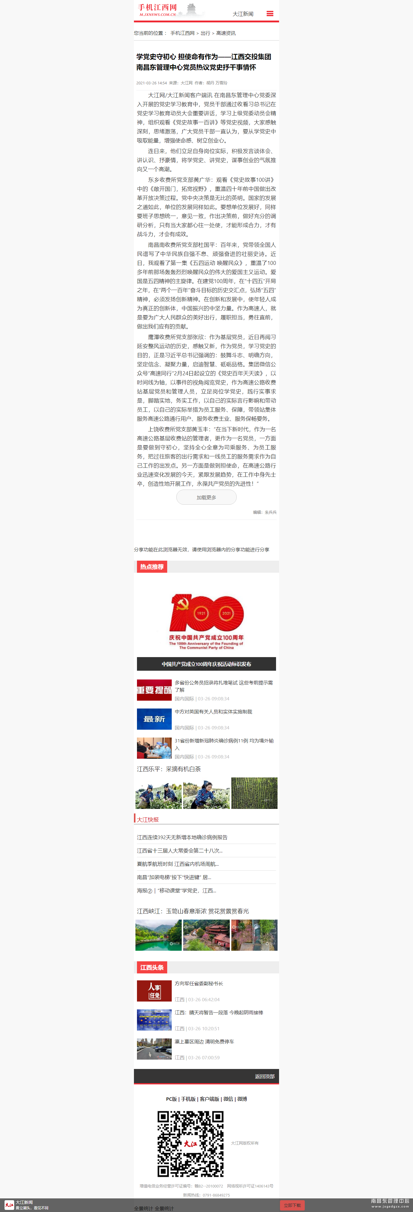 学党史守初心 担使命有作为——江西交投集团南昌南管理中心党员热议党史抒干事情怀-出行-手机江西网 https://m.jxnews.com.cn/go/system/2021/03/26/019228130.shtml