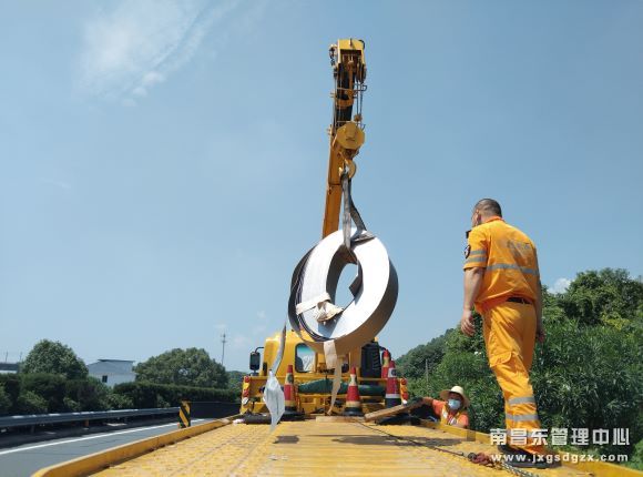 近日,南昌南管理中心清障救援队杨梅岭中队正常巡逻时发现一辆半挂车货物掉落在应急车道,立即安排车辆紧急援助,帮助司机解决燃眉之急。