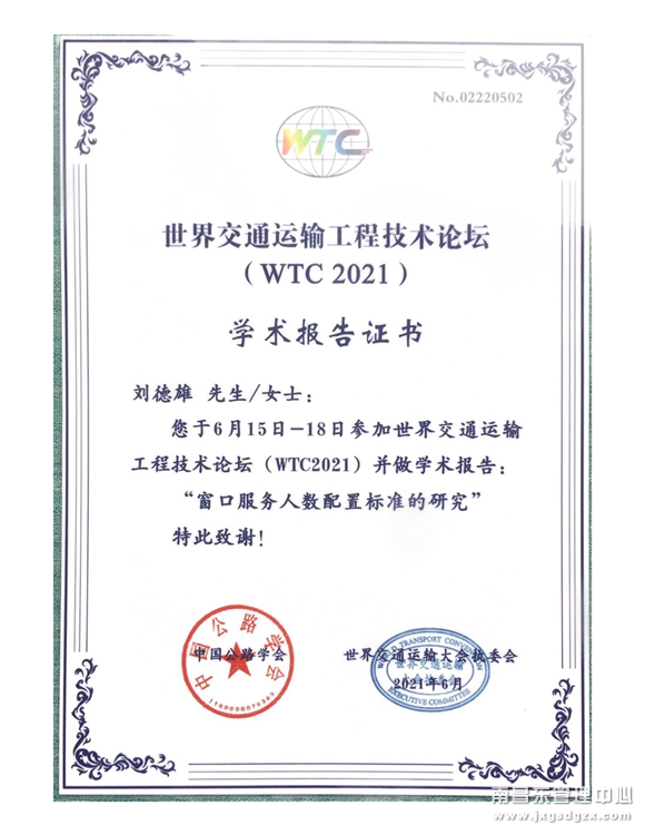 近日获悉,南昌南管理中心樟树东收费所负责人刘德雄应邀出席世界交通运输工程技术论坛(WTC2021)暨交通科技博览会。据悉,刘德雄同志是世界交通运输大会第二届、第三届技术委员会会员,曾两次参加世界交通运输大会并做了报告。