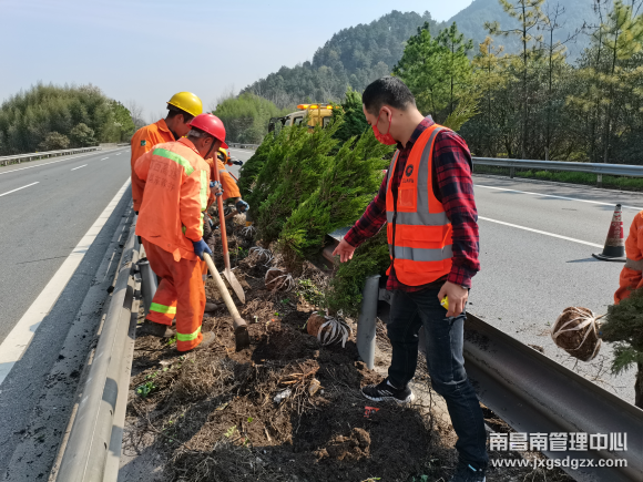 春风催新绿,植树正当时,阳春三月,正是绿化补植的好季节,为确保高速公路中分带绿化整齐美观,近日,南昌南管理中心玉山养护站抓住春季绿化补植的有利时机,组织养护工人对辖段道路中央绿化带进行苗木补植,掀起春季公路植树热潮。