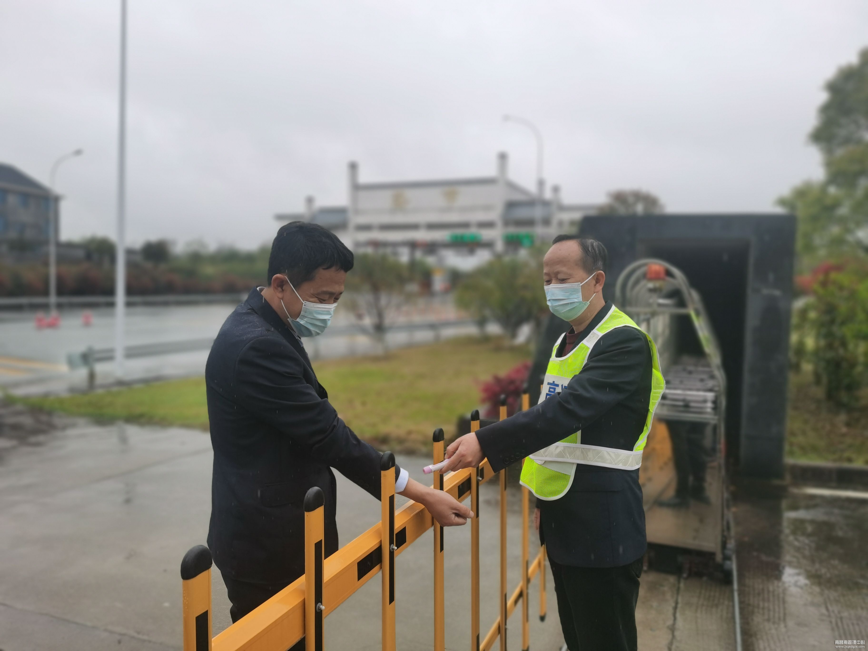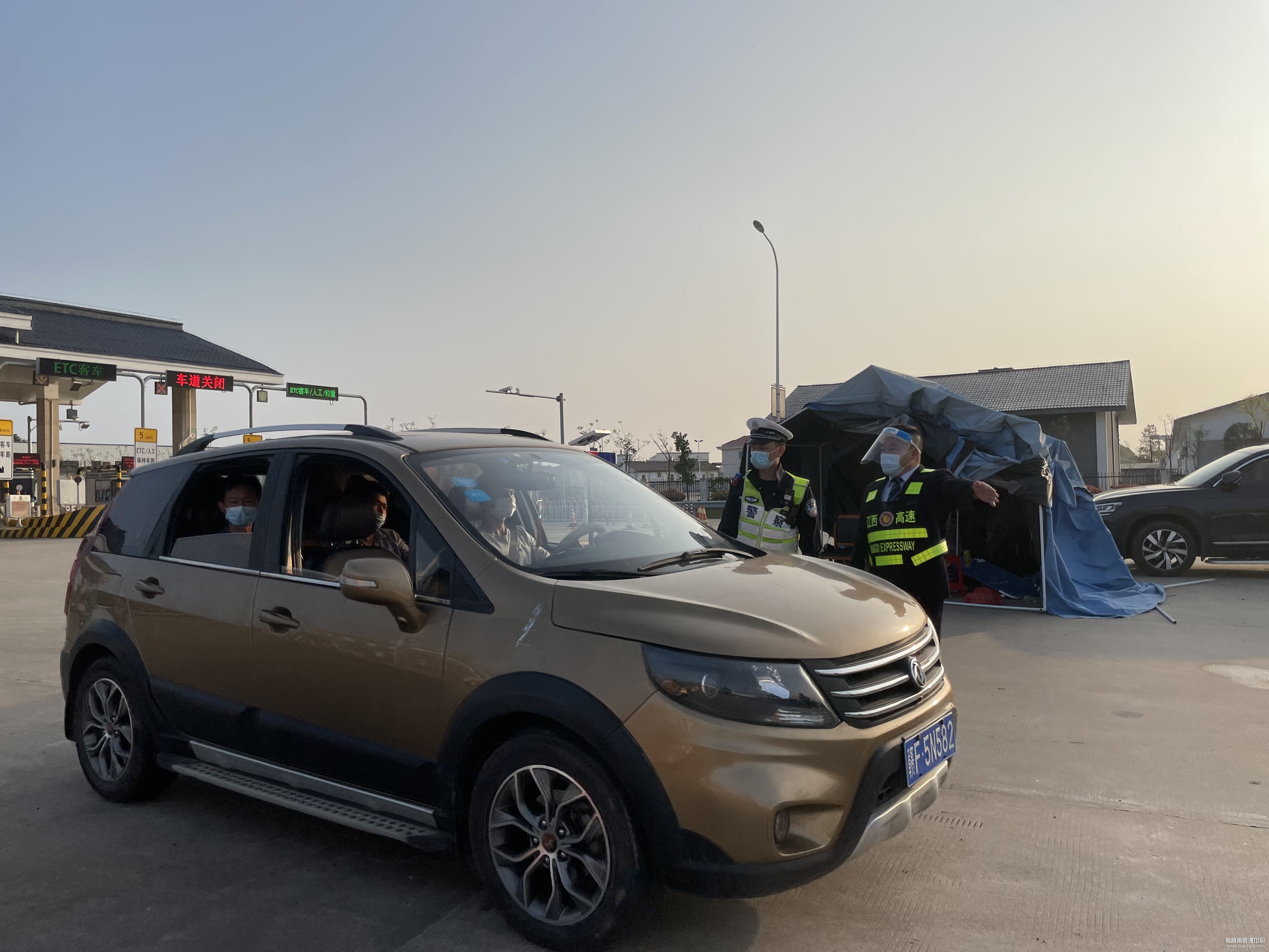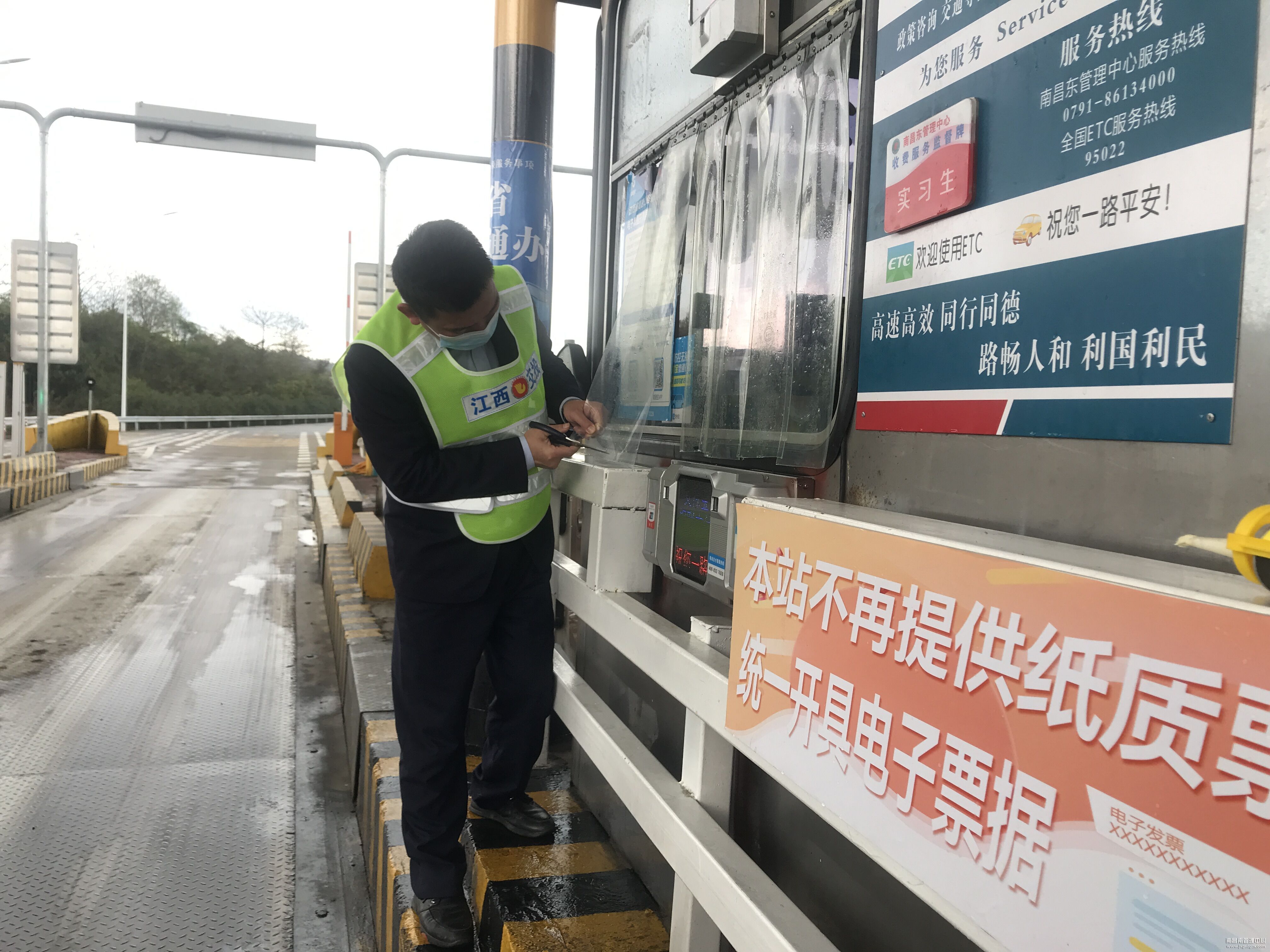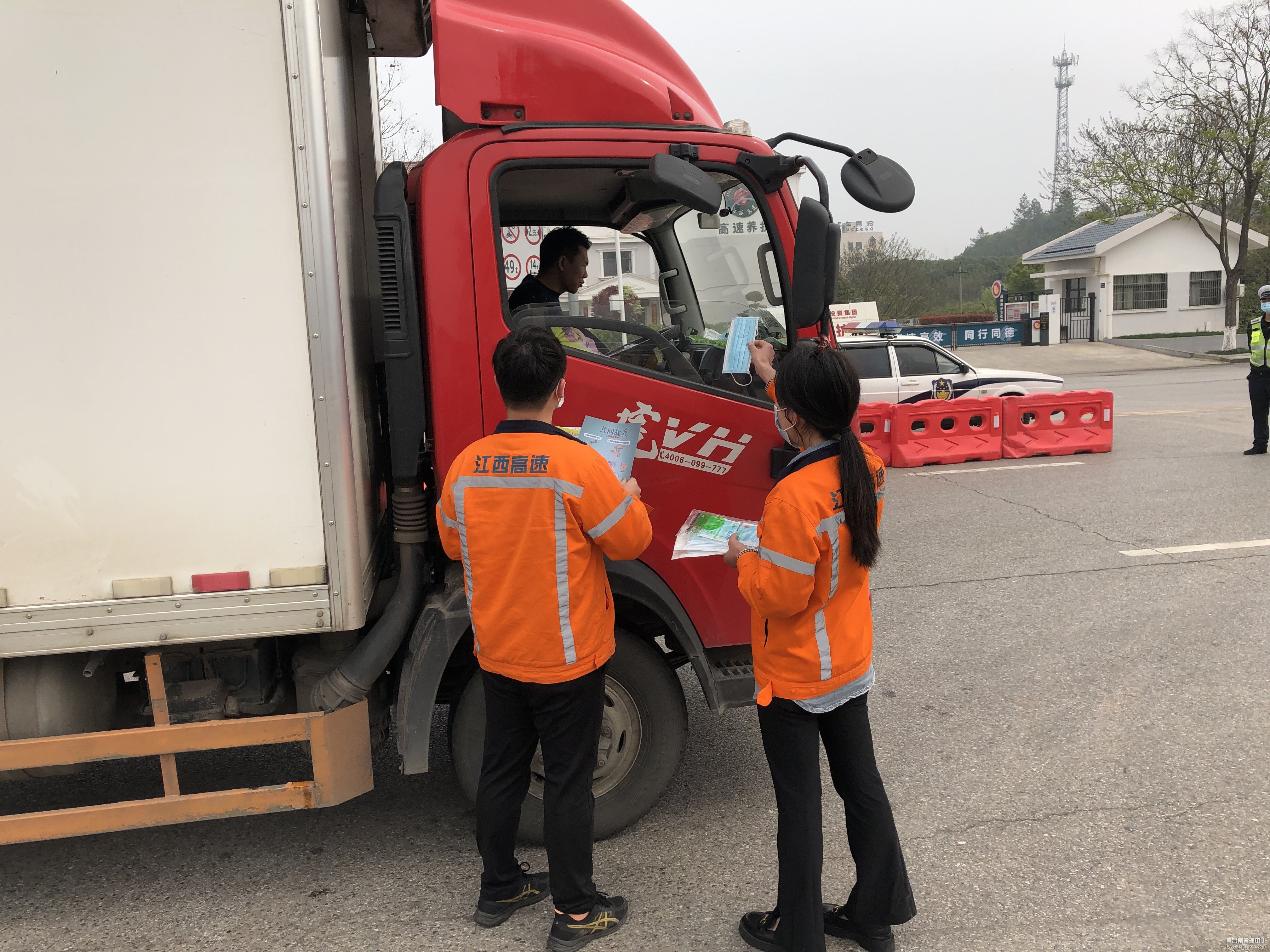 “您好,按照疫情防控要求,现在不能上高速,请您返回。”为阻断疫情输出扩散,南昌南收费所联合高速交警在收费站入口设立临时管制卡点,该所党员突击队与高速交警周密配合,做好车辆和人员的引导、登记及劝返工作,坚决守护好疫情防控安全通道。同时开辟绿色通道,保障防疫、医疗、救援、运输物资等车辆优先通行,并积极宣传引导司乘人员做好安全防护,为打赢这场没有硝烟的战争贡献积极力量。