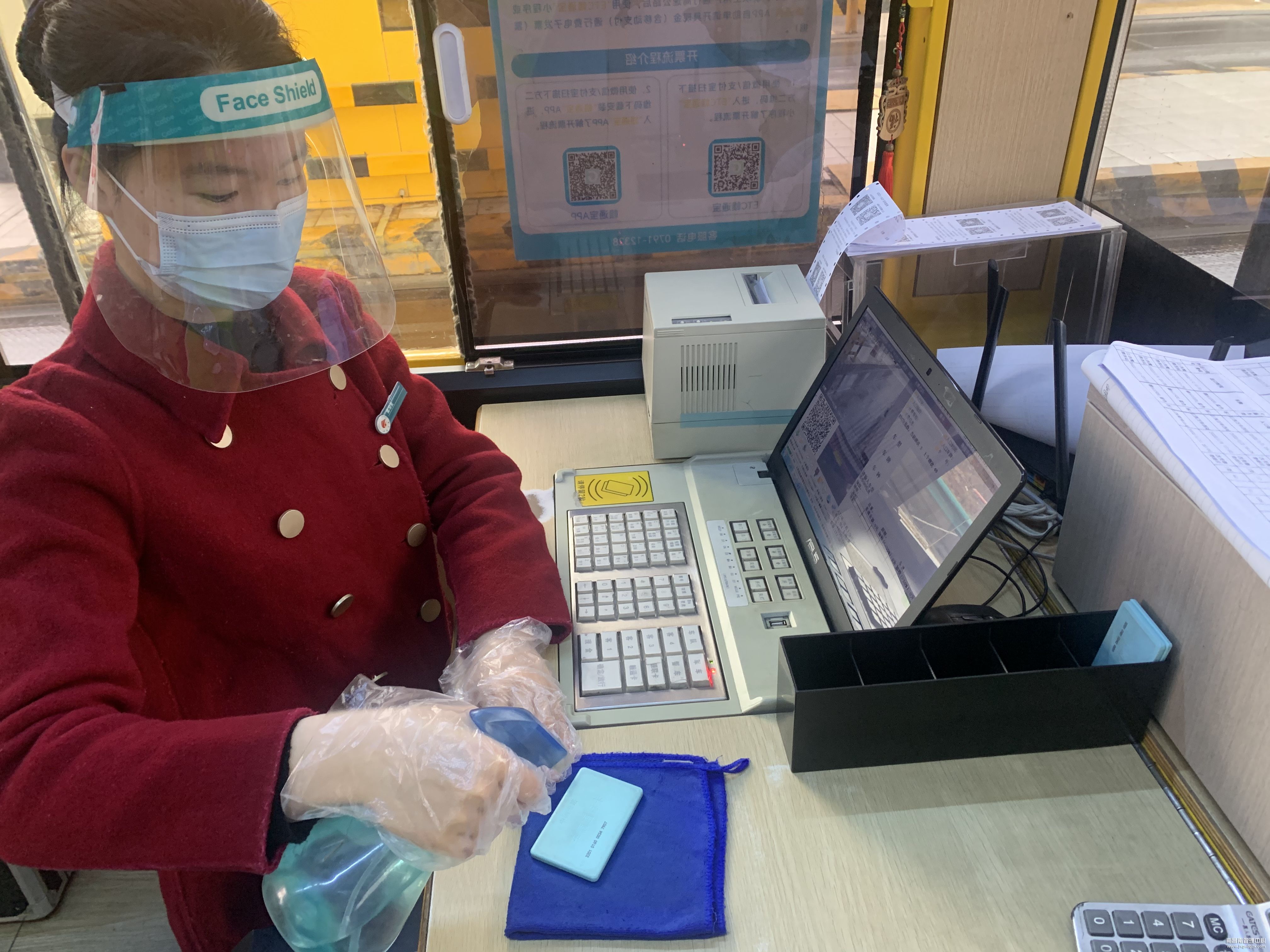 司乘的人身安全与健康是每个高速人最深的关切。全面做好细节防控,掐断病毒传播源就是最有效的行动。在鹰潭西收费站,收费员许雨洁正在用浸泡过消毒液的棉布对刚回收的CPC卡进行“洗澡”消毒,随后再放入卡箱。看似简单的一个小举动,却能有效阻断病毒通过CPC卡的传播。“现在收费站进出车辆不多,我们对CPC 卡进行首次消毒,能够成功将疫情扼杀在收费一线最前端,也能帮票管员减轻工作量。”许雨洁一边消毒一边说.