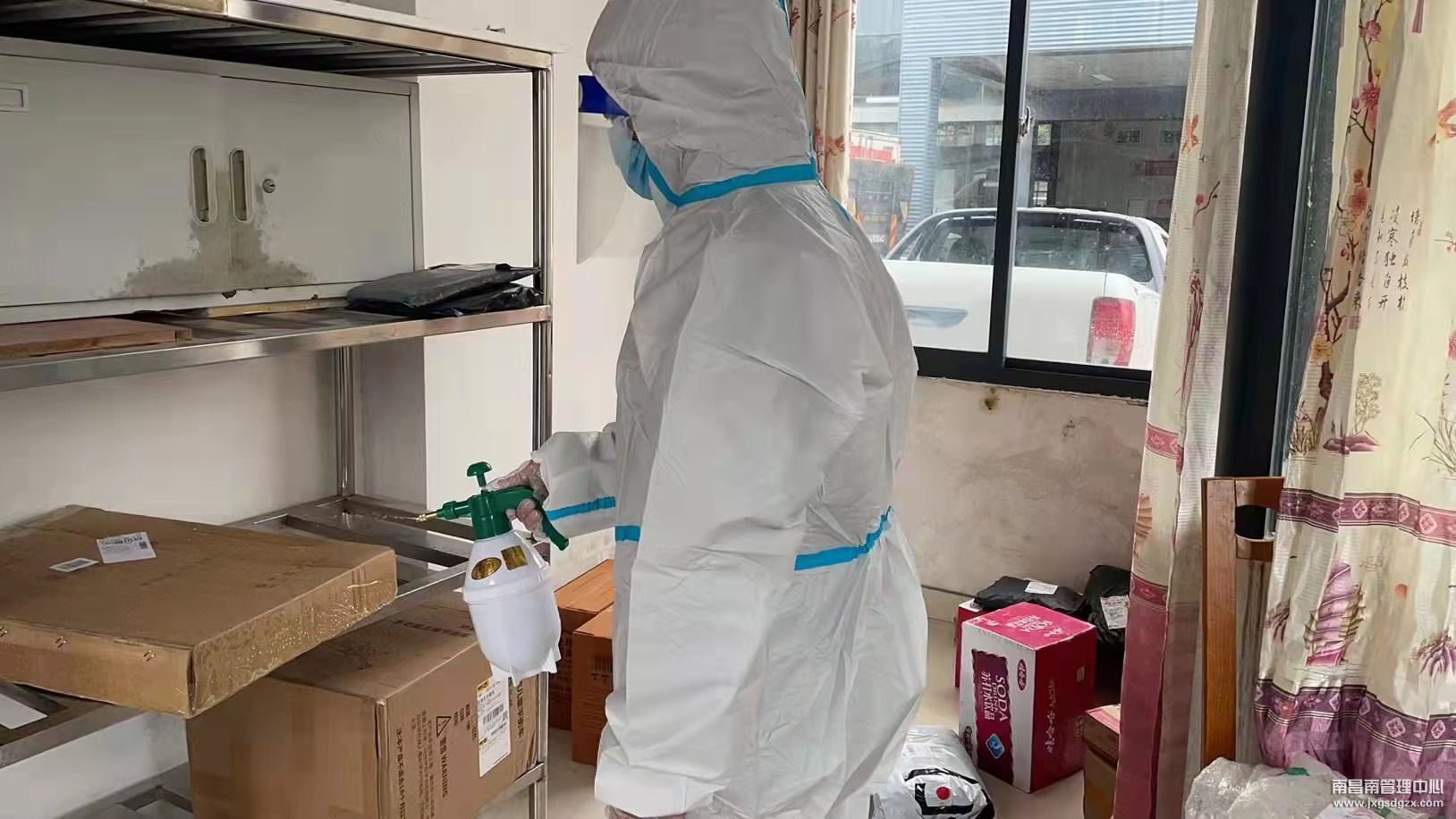 如果说防护服、蓝口罩、橡胶手套是“大白”们最美丽的战服,那消毒水、酒精、喷雾器便是防疫“安全员”最锋利的武器。南昌南收费所邹世民,一位有着10年党龄的90后年轻党员。面对新一轮疫情,坚持从源头防控,加大消杀力度,杀菌防疫不放过每一个角落,这是他对自己的要求,也是这样做的,他始终绷着一根弦,团结党员群众一起投身到抗疫战斗中。每天上午9点、下午15点,在收费岗亭、办公楼、宿舍楼、食堂、院区等地方,大家都能看到他背着30多斤喷雾器消毒的身影,坚持一天两次的消毒工作,但从不喊累,从来没半句怨言。他说“疫情当前,党员向前!我作为男同志,作为一名年轻的党员,更应该、必须在关键时刻站出来、冲在前、干在前。”