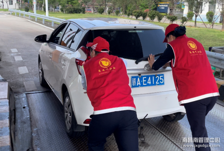 4月27日中午11:25分,一辆车牌为赣A的白色小车在南昌南管理中心樟树东收费站下高速时突然停在了收费窗口,无法启动。