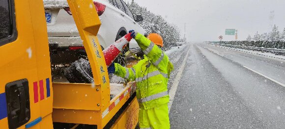 之前,该中心车辆救援大队提前取消人员休假,全员奔赴岗位,随时上路驻点待命施救。各养护站分班分批次开展道路巡查监测道路和桥涵温度,根据道路实况即刻开展道路抗冰除雪和交通保畅等应急处突工作。截止早上9点,累计投入融雪剂50余吨,标志牌150余块,安全锥6000余个。应急人员300余人。应急设备及车辆60余台班次。