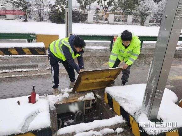 1月22日,受雨雪天气影响,高速收费站地磅、栏杆机、车道摄像机、抓拍器等被积雪覆盖,为保障设备正常运行,南昌南管理中心信息分中心各维护站做好低温雨雪天气机电设备维护工作。