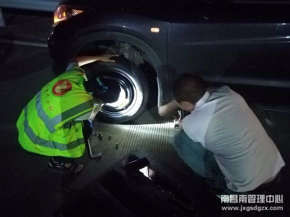 双金收费站深夜帮助司乘换胎