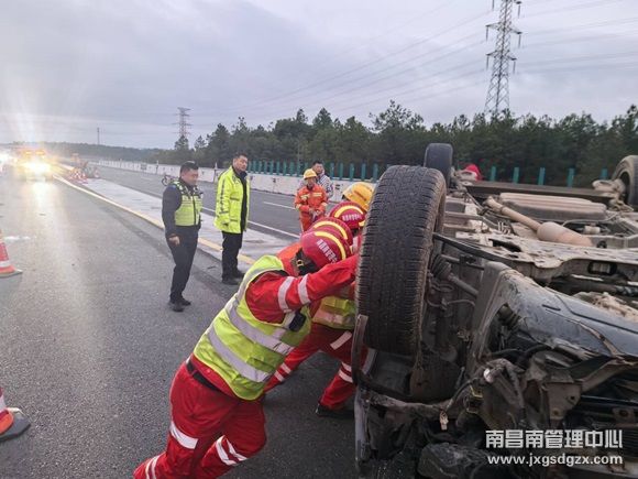 3月4日6时10分,近日,一小车在沪昆高速上海方向K599公桩处侧翻,占用行车道,情况危急,南昌南车辆救援大队鹰潭中队接到通知立即出发,20分钟恢复了道路畅通。