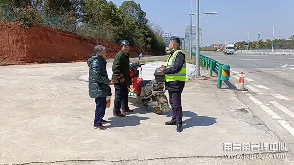 3月17日下午13时,正值南昌南管理中心进贤收费站车流高峰时段,入口收费员在观察ETC车道通行情况时,发现一位老人骑着电动车正朝入口车道驶来,收费员迅速上前了解情况,并将老人引导至安全区域。